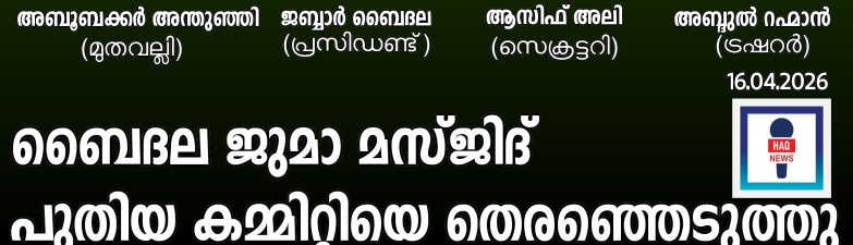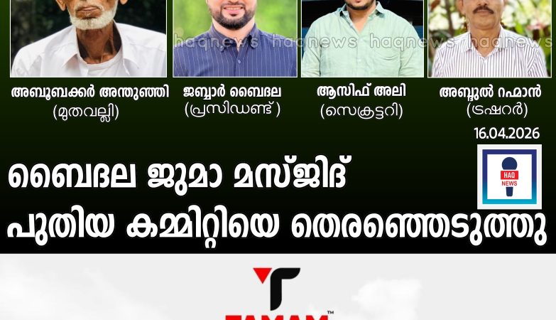 ബൈദല ജുമാ മസ്ജിദ് പുതിയ കമ്മിറ്റിയെ തെരഞ്ഞെടുത്തു