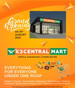 ഉപ്പള: കാസറഗോഡ് ജില്ലയിലെ പ്രധാന ടൗണുകളിലൊന്നായ ഉപ്പളയിൽ ആവശ്യസാധനങ്ങളടക്കം ഒരു കുടക്കീഴിൽ ലഭ്യമാകും വിധം സംവിധാനമൊരുക്കി K3 സെൻട്രൽ മാർട്ട് നാളെ ഉദ്ഘാടനം ചെയ്യപ്പെടുകയാണ്.