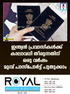 ഇന്ത്യൻ പ്രവാസികൾക്ക് കാലാവധി തീരുന്നതിന് ഒരു വർഷം മുമ്പ് പാസ്പോർട്ട് പുതുക്കാം