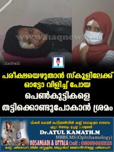 പരീക്ഷയെഴുതാൻ സ്കൂളിലേക്ക് ഓട്ടോ വിളിച്ച് പോയ പെൺകുട്ടികളെ തട്ടിക്കൊണ്ടുപോകാൻ ശ്രമം