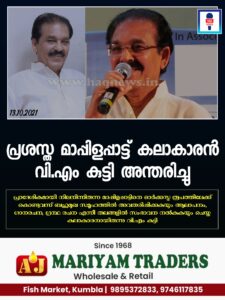കോഴിക്കോട്∙ മാപ്പിളപ്പാട്ട് കലാകാരൻ വി.എം കുട്ടി അന്തരിച്ചു.