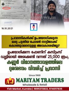 ഉപയോഗിക്കുന്ന ഫോണിന് കസ്റ്റംസ് ഡ്യൂട്ടിയായി അടക്കേണ്ടി വന്നത് 25,000 രൂപ; കണ്ണൂര് വിമാനത്താവളത്തിലെ ദുരനുഭവം വിവരിച്ച് പ്രവാസി
