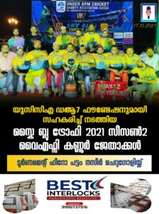 യുസിസിഎ UB7 ഫൗണ്ടേഷനുമായി സഹകരിച്ച് നടത്തിയ സ്കൈ ബ്ലൂ ട്രോഫി 2021 സീസൺ 2 വൈഎഫ്സി കണ്ണൂർ ജേതാക്കൾ