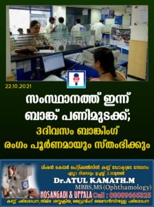 സംസ്ഥാനത്ത് ഇന്ന് ബാങ്ക് പണിമുടക്ക്; 3ദിവസം ബാങ്കിംഗ് രംഗം പൂർണമായും സ്തംഭിക്കും