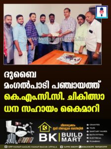 ദുബൈ മംഗൽപാടി പഞ്ചായത്ത് കെ.എം.സി.സി. ചികിത്സാ ധന സഹായം കൈമാറി