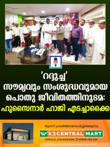 ‘റദ്ദുച്ച’ സൗമ്യവും സംശുദ്ധവുമായ പൊതു ജീവിതത്തിനുടമ: ഹുസൈനാർ ഹാജി എടച്ചാക്കൈ