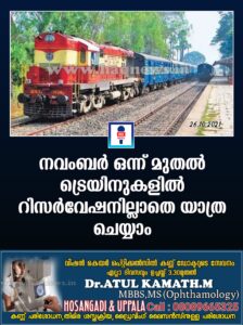 നവംബര് ഒന്ന് മുതല് ദക്ഷിണ റെയിവെക്ക് കീഴിലുള്ള 23 തീവണ്ടികളിള് കൂടി ജനറല് കോച്ചുകള് പുനഃസ്ഥാപിക്കും. വിദ്യാഭ്യാസ സ്ഥാപനങ്ങള് തുറക്കാന് പോകുന്ന സാഹചര്യത്തില് സ്ഥിരം യാത്രികര്ക്കും മറ്റും ഏറെ ആശ്വസകരമായ തീരുമാനമാണിത്.