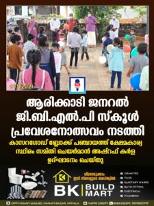 ആരിക്കാടി ജനറൽ ജി.ബി.എൽ.പി സ്കൂൾ പ്രവേശനോത്സവം നടത്തി