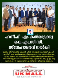 ഹനീഫ് എം കൽമാട്ടക്കു സമ്മാനിച്ചു