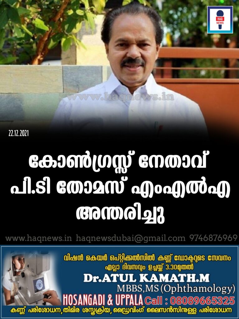 കോൺഗ്രസ്സ് നേതാവ് പി.ടി തോമസ് എംഎൽഎ അന്തരിച്ചു
