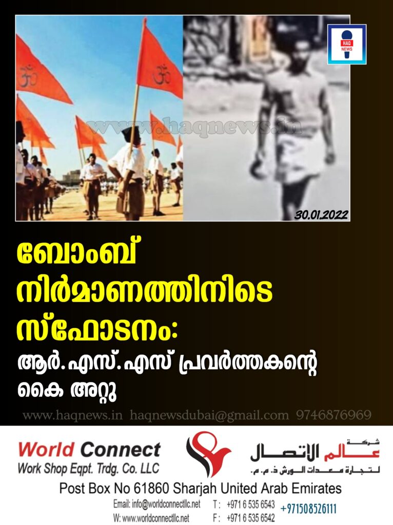 ബോംബ് നിര്മാണത്തിനിടെ സ്ഫോടനം: ആര്.എസ്.എസ് പ്രവര്ത്തകന്റെ കൈ അറ്റു