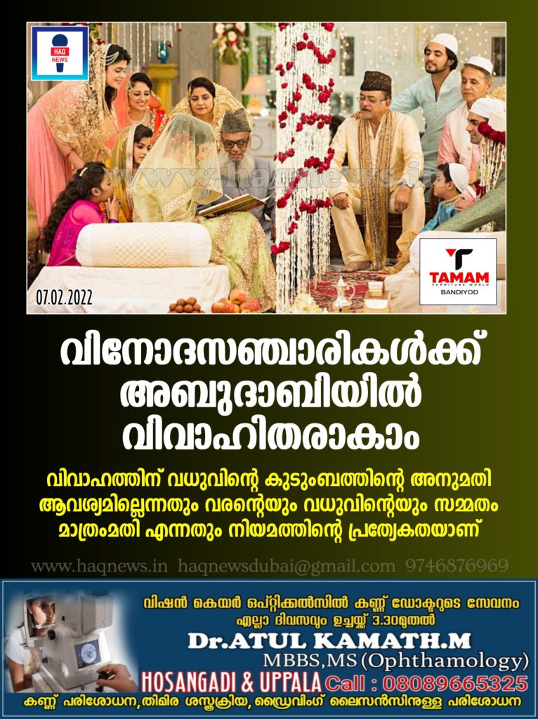 വധുവിന്റെ കുടുംബ അനുമതി ആവശ്യമില്ല, വരന്റെയും വധുവിന്റെയും സമ്മതം മാത്രംമതി;വിനോദസഞ്ചാരികൾക്ക് അബുദാബിയിൽ വിവാഹിതരാകാം