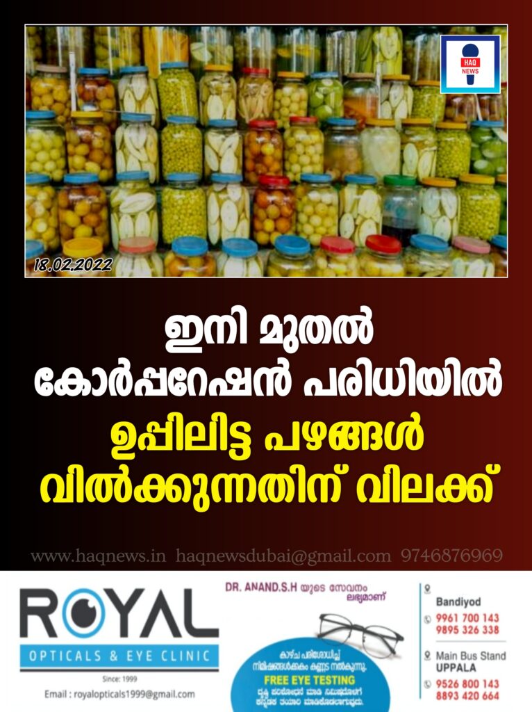 ഇനി മുതൽ ഉപ്പിലിട്ട പഴങ്ങൾ വിൽക്കുന്നതിന് വിലക്ക്