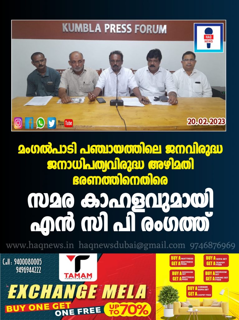 മംഗൽപാടി പഞ്ചായത്തിലെ ജനവിരുദ്ധ ജനാധിപത്യവിരുദ്ധ അഴിമതി ഭരണത്തിനെതിരെ സമര കാഹളവുമായി എൻ സി പി രംഗത്ത്