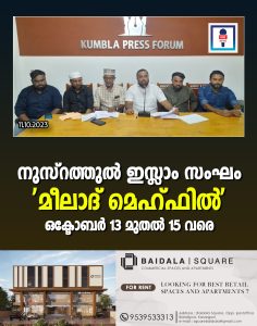 കുമ്പള: കൊടിയമ്മ നുസ്റത്തുൽ ഇസ് ലാം സംഘം 21-ാം വാർഷികവും ഈ വർഷത്തെ മീലാദ് മെഹ്ഫിലും ഒക്ടോബർ 13 മുതൽ 15 വരെ ഹംസ മുസ് ലിയാർ നഗറിൽ വിവിധ പരിപാടികളോടെ സംഘടിപ്പിക്കുമെന്ന് ഭാരവാഹികൾ കുമ്പള പ്രസ് ഫോറത്തിൽ നടത്തിയ വാർത്താ സമ്മേളനത്തിൽ അറിയിച്ചു.