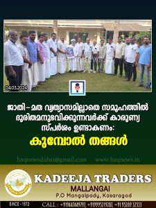 ജാതി-മത വിത്യാസമില്ലാതെ സമൂഹത്തിൽ ദുരിതമനുഭവിക്കുന്നവർക്ക് കാരുണ്യ സ്പർശം ഉണ്ടാകണം:കുമ്പോൽ തങ്ങൾ