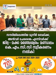 മുനീർ ബേരിക്ക, അൻവർ ചേരങ്കൈ എന്നിവർക്ക് ജിദ്ദ-മക്ക മഞ്ചേശ്വരം മണ്ഡലം കെ.എം.സി.സി സ്വീകരണം നൽകി