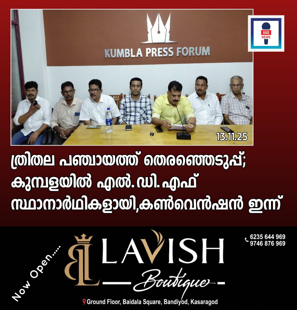 ത്രിതല പഞ്ചായത്ത് തെരഞ്ഞെടുപ്പ്;കുമ്പളയിൽ എൽ.ഡി.എഫ് സ്ഥാനാർഥികളായി, കൺവെൻഷൻ ഇന്ന്