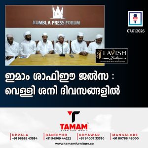 ഇമാം ശാഫിഈ ആണ്ട് നേർച്ചയും ഖത്ത്മുൽ ഖുർആൻ സദസ്സും വെള്ളി,ശനി ദിവസങ്ങളിൽ ബദ്രിയ്യ നഗർ ഇമാം ശാഫിഈ ക്യാമ്പസിൽ നടക്കുമെന്ന് സംഘാടകർ വാർത്ത സമ്മേളനത്തിൽ അറിയിച്ചു.